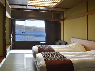 「ウイングス館」にある阿寒湖側和ツインタイプの客室です。 和室のお部屋にベッドをご用意いたしました。窓からは阿寒湖が広がります。 <客室の主な設備> ・広さ:36平米 ・眺望:湖側 ・寝具:ベッド2台(3名様でご宿泊の場合は1名様は布団利用となります) ・ユニットバス ・禁煙 ※全客室禁煙です。喫煙される場合は喫煙所をご利用ください。 ※鶴雅グループが取り組むSDGsの推進のため、歯ブラシなどのアメニティはロビーにご用意しております。